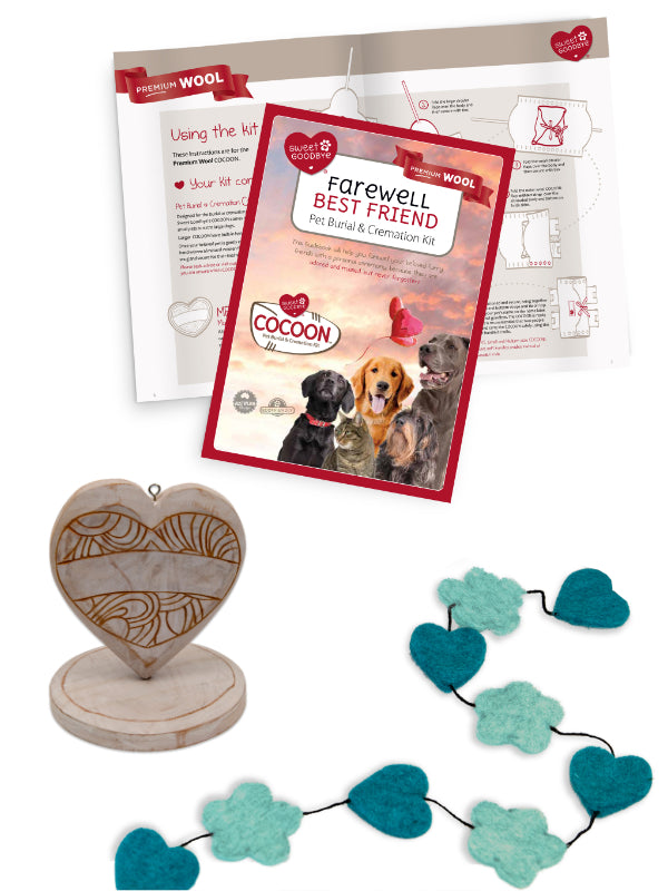 Every Sweet Goodbye COCOON® (Premium Wool) Soft Pet Casket comes with a ceremony kit that includes everything you need to create a memorable ceremony that celebrates the life of your dear friend.