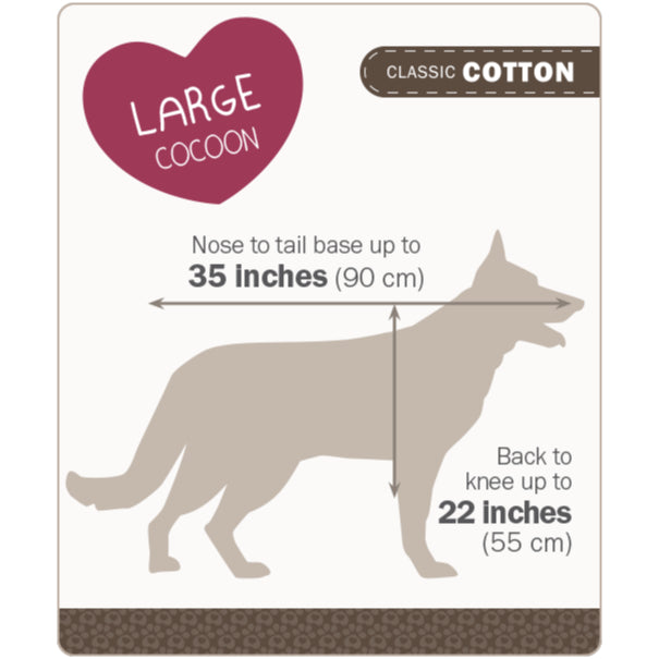 The Sweet Goodbye COCOON (Classic Cotton) is a soft, beautifully designed, handmade, quality shroud with a protective cotton canvas layer with built-in handles for easy transportation. It keeps your beloved pets safe and snug so they can be securely transported for burial or cremation and laid with care in their final resting place.