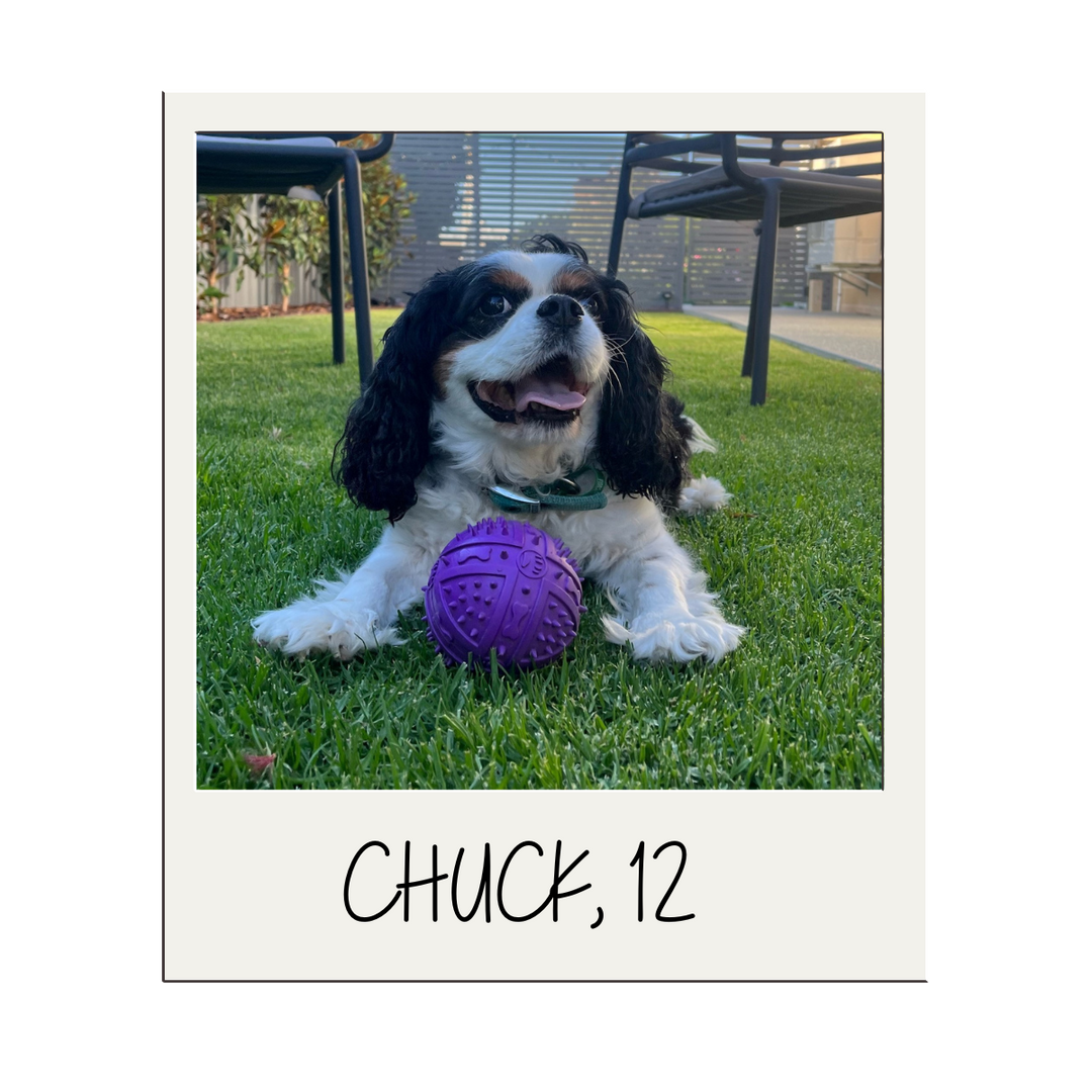 The beautiful Chuck is owned by Sharon our Social Media Manager. Chuck loves his squeaky toys, and no it's not an error, Sharon does have two pets!